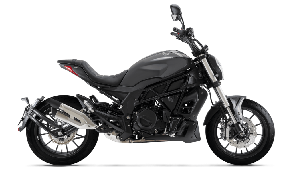The ex-showroom price of the vehicle is ₹5.25 Lakh. The on-road price includes registration and insurance cost. Price can vary across different cities as registration cost is different across India. Benelli 502 C comes up in 3 colour variants: Glossy Black, Purple and Matte Black.